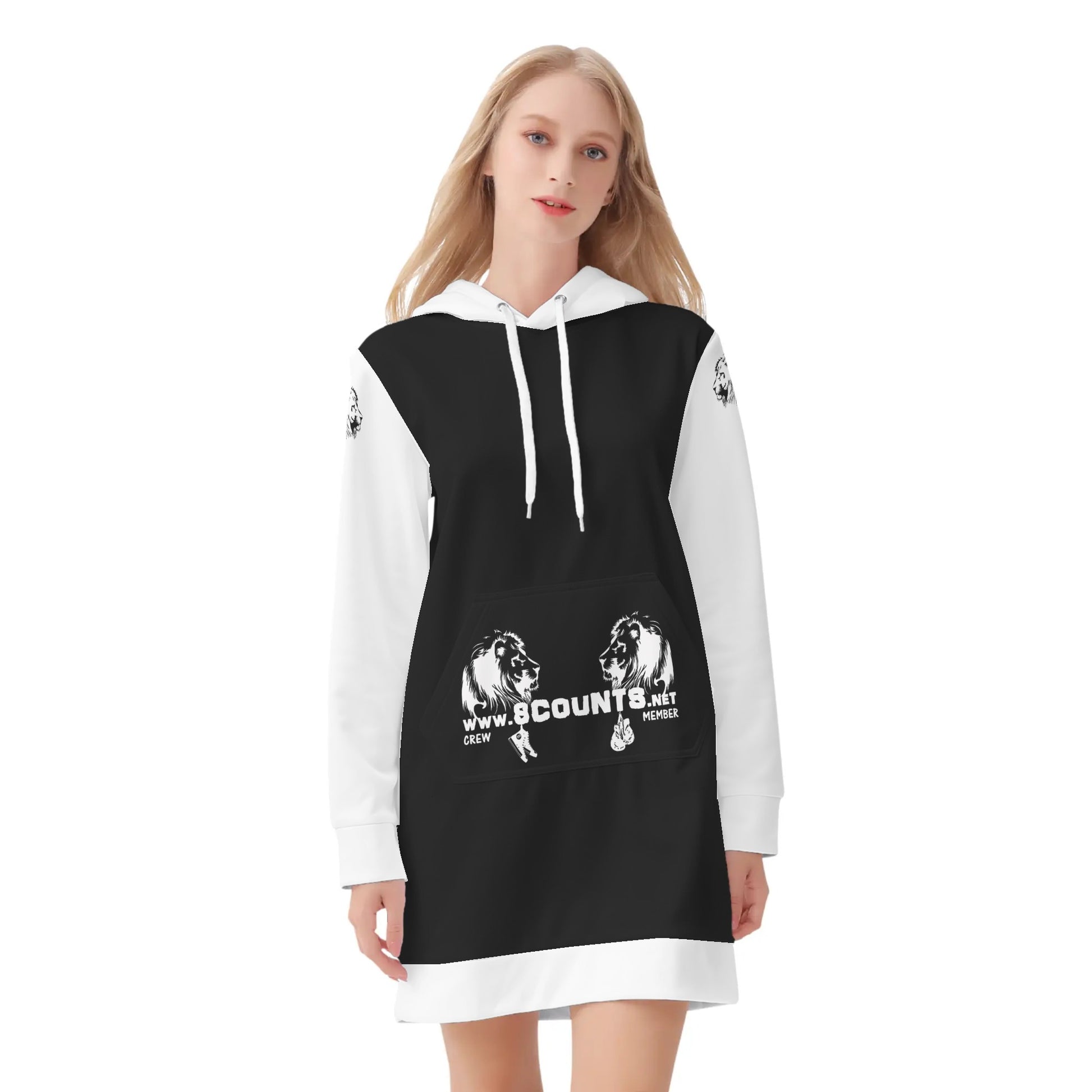 * Long-sleeved hooded sweatshirt dress with kangaroo pocket on the front, making it easy to carry small items and less likely to fall out